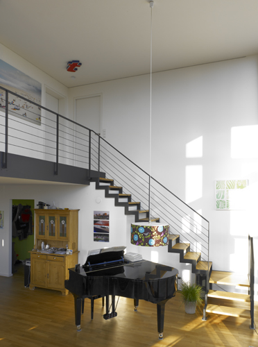 Der zweigeschossige Luftraum der Maisonette-wohnung
