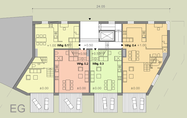 davon 4 im Erdgeschoss mit direktem Gartenbezug. Die Wohnungen haben